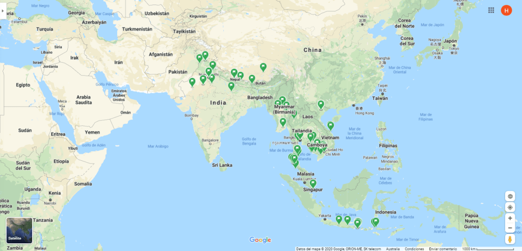 El viaje por Asia ha sido una experiencia transformadora. Conocer un continente con una historia milenaria, múltiples religiones, donde se encuentra aproximadamente el 70% de la población mundial. Este es algo que uno podría llegar a suponer pero cuando recorres las calles por India, Tailandia o Vietnam, definitivamente lo sientes en cada paso y espacio que visitas. Recorrimos 8 de los 49 países que componen el continente asiático, con lo cual afortunadamente tenemos muchas razones para volver. En esta aventura decidimos hacer un trayecto en orden geográfico, empezando por India y terminando en Indonesia (mapa), algo que afortunadamente nos permitió ir viendo las diferencias en su cultura, historia, realidad actual y proyección futura. A ti te dicen Asia, es probable que pienses en muchas personas con ojos rasgados pero nada más en 8 países vimos entre 5 y 6 fenotipos diferentes. Es así como después de recorrer 11.800 kilómetros por avión, bus, moto, barcos y caminando en 45 ciudades o provincias en India, Nepal, Myanmar, Tailandia, Camboya, Vietnam, Singapur e Indonesia nos motivamos a compartir el sello que iba dejando cada lugar, con la idea de acercar Asia a quienes no lo han visitado y ojalá motivarlos para que puedan ir en algún momento, ya que nuestra conclusión fue que Asia nos abrió (en algún momento golpeó) la cabeza en seguir comprendiendo lo diverso pero parecido que es el mundo.